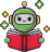 3D illustration of a friendly robot with green helmet writing in a book, surrounded by floating magical sparkles and books, whimsical pastel style